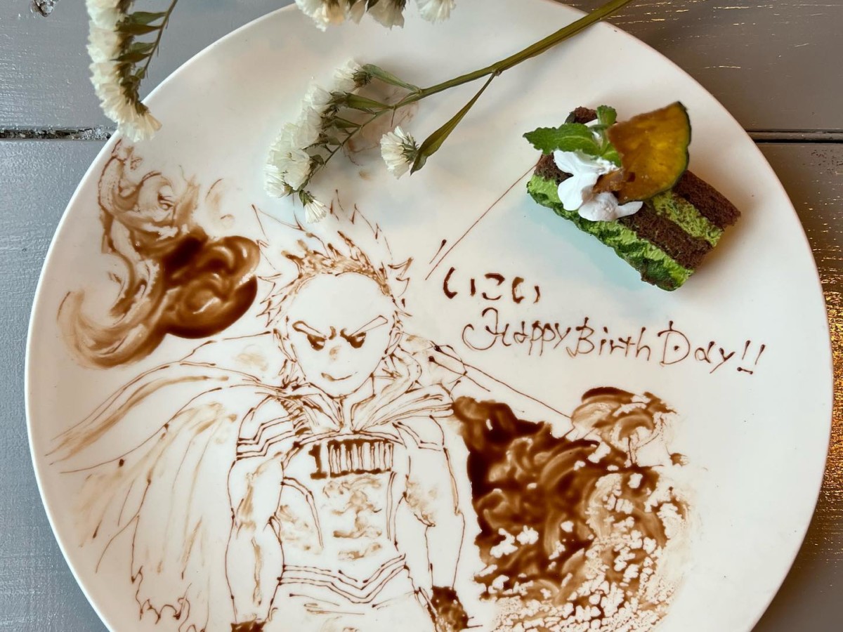 ️【大人気】️世界に1つだけのサプライズプレート今回のお題は【僕のヒーロアカデミア】よりミリオ🦸♂️メッセージやイラストはお客様のリクエストにお応えしてお作りしております☆【期間限定】で無料でご準備致しますのでご予約はお早めに!#福岡グルメ #天神グルメ#大名グルメ#福岡サプライズ#福岡誕生日#チョコペンアート#糸島自社農園#ドライフラワーのある暮らし#福岡食べ飲み放題#大人の隠れ家