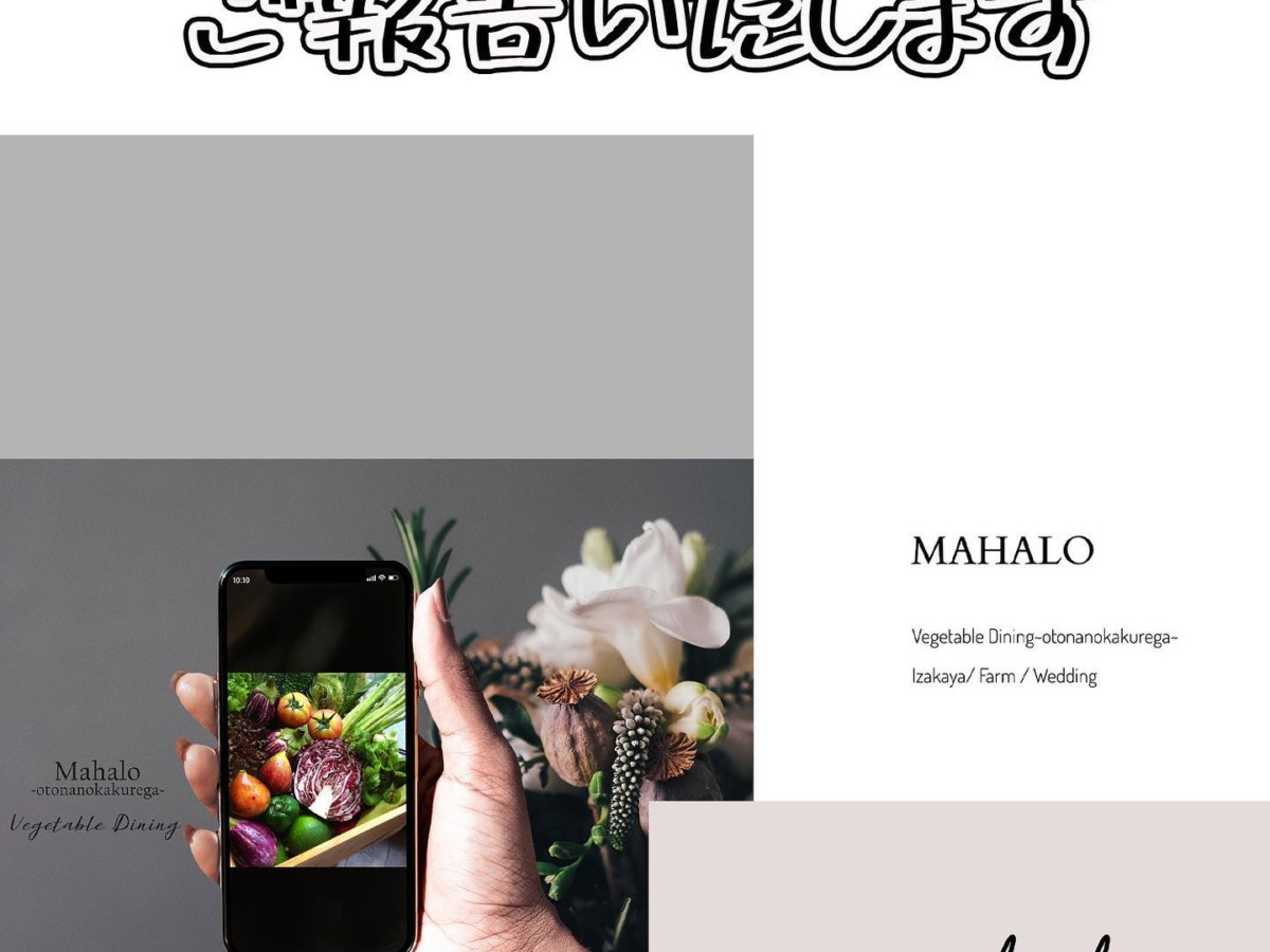 ️大変お待たせしました️明日からMAHALO大名店まん延防止法の解除を受けて営業を再開いたします早速ありがたいことに明日から13名様のご予約が入っております♂️しっかりと来て頂けるお客様を満足させれるように改めて頑張っていきたいと思います是非たくさんのご来店をお待ちしております️#福岡グルメ#福岡占いカフェ#警固ランチ#大名ランチ#天神ランチ#福岡食べ飲み放題#福岡ランチ#糸島自社農園#福岡ママ会#福岡ダイエット部#営業再開#福岡占い#ドライフラワー#野菜#大人の隠れ家