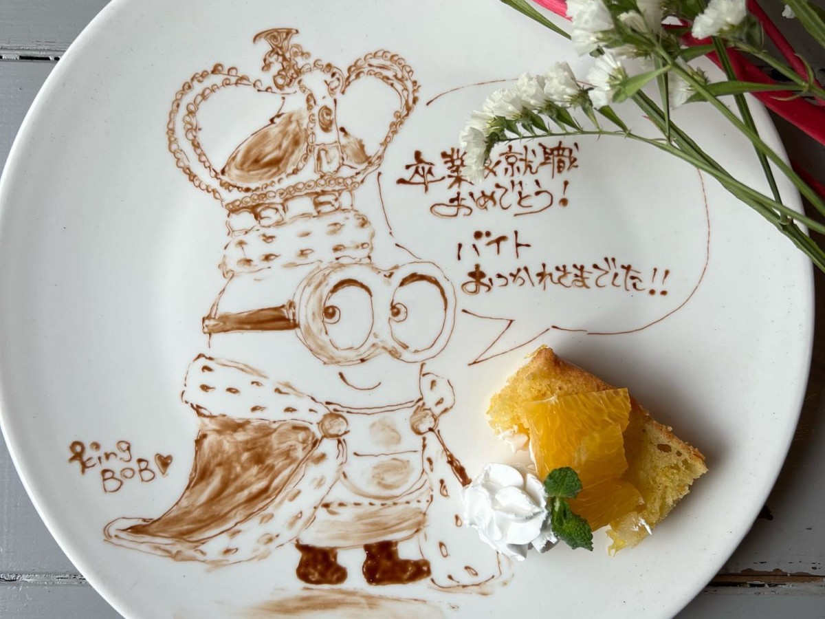 【大好評】期間限定無料お誕生日プレートこのシーズンでは卒業祝いや就職祝いでご利用される方も多くいらっしゃいますのでこの機会に是非ご利用下さい☆本日のケーキは糸島自社農園@mahalo.farm の無農薬八朔使用【八朔のパウンドケーキ】チョコペンイラストはオーダーメイドでお描きします🖍#福岡グルメ #福岡カフェ #天神グルメ#大名グルメ#福岡誕生日#ミニオン#チョコペンアート#糸島自社農園#福岡個室#大人の隠れ家#ドライフラワーのある暮らし#福岡食べ飲み放題