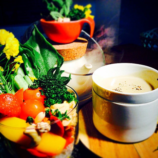 4月の旬な糸島無農薬有機野菜のバーニャカウダー♪︎アイスプラント︎サニーレタス︎ラディッシュ︎オクラ︎春菊の花︎ルッコラ︎サラダ菜︎パプリカ︎レッドキャベツ︎ブロッコリー︎大根などなど#マハロ#バーニャカウダー#糸島#無農薬野菜#有機野菜#アイスプラント#サニーレタス#オクラ#サラダ菜#大根#春菊#トマト#パプリカ#4月#夜カフェ#l4l #love #follow #cook #instafood #instagood