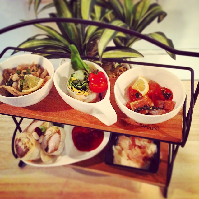 本日の限定︎小鉢レンジャー♪★ほうれん草と鶏皮のだいだい酢★海老と海藻のマリン春巻き★一口サーモンとプチトマトのマリネ★じっくり煮込んだ豚の角煮のケバブロール カレー風味★手作り豆乳豆腐#ケバブ#マリネ#皮酢#豆乳#豆腐#生春巻き#無農薬野菜#糸島#サルサ#だいだい#ほうれん草#マリン#マハロ#小鉢#instafood #instagood #l4l #food #follow #cafe #cook