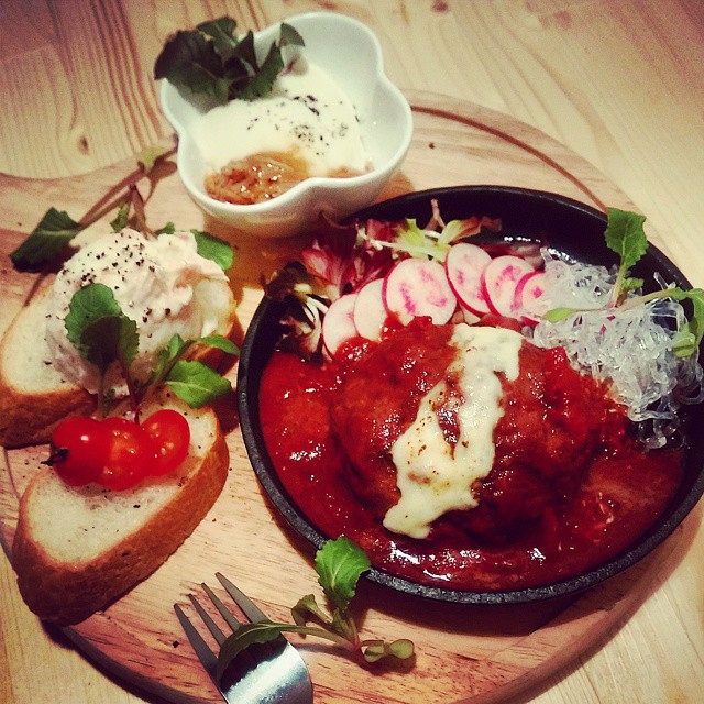 今日の糸島無農薬野菜を使ったカフェプレート。トマトデミグラスソースの煮込みチーズハンバーグツナとポテトのディッシュ手作り豆乳豆腐のなめ茸がけ。#マハロ #cook #プレート #ハンバーグ #無農薬 #カフェ #instagood #instafood #l4l #f4f #food