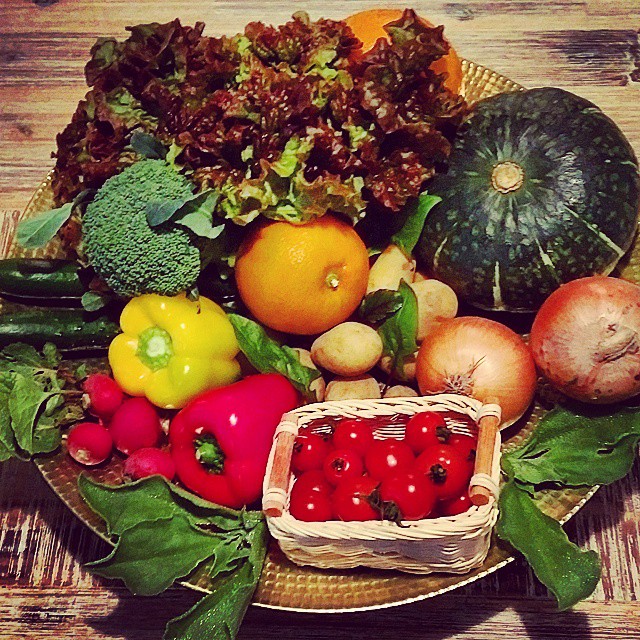 今日、取れたて糸島無農薬野菜調理します♪オススメ食材はアイスプラント!探して見てください♪#マハロ #無農薬 #ミニトマト #かぼちゃ #アイスプラント #パプリカ #玉ねぎ #ブロッコリー #じゃがいも #ハッサク #橙 #キュウリ #カフェ#instagood #instafood #f4f #l4l #love