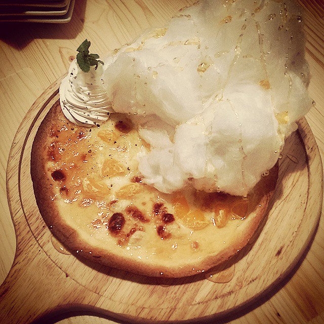 今日の糸島無農薬果物を使ったスイーツ。無農薬みかんと蜂蜜のデザートピザ。#マハロ #無農薬 #ハチミツピザ #honey #pizza #ピザ#蜂蜜#はちみつ#スイーツ部 #綿菓子 #無農薬#みかん#cook #instagood #instafood #l4l #f4f